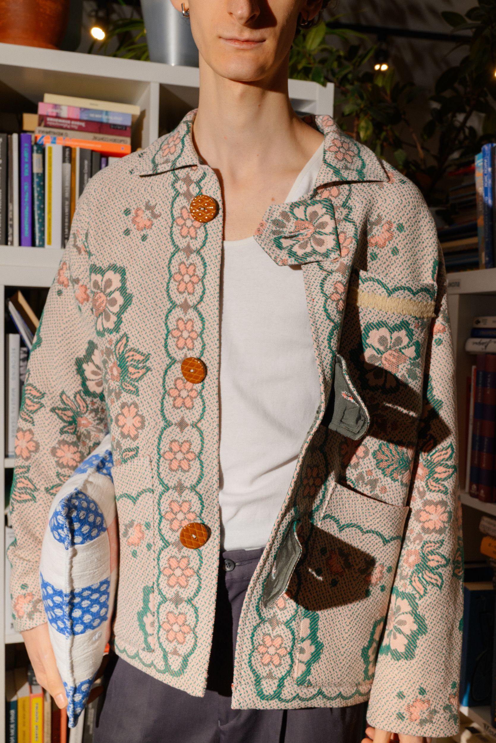 This one-of-a-kind Pillow is made in patchwork technique from antique cotton coverlets. Pillow is featured with handmade embroidery.