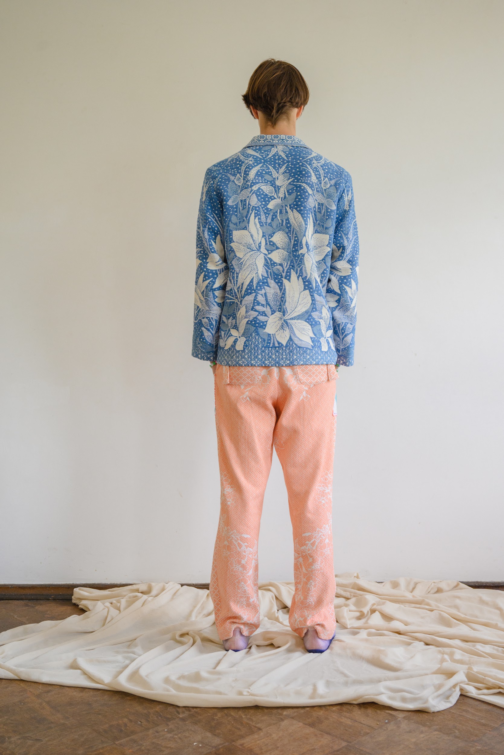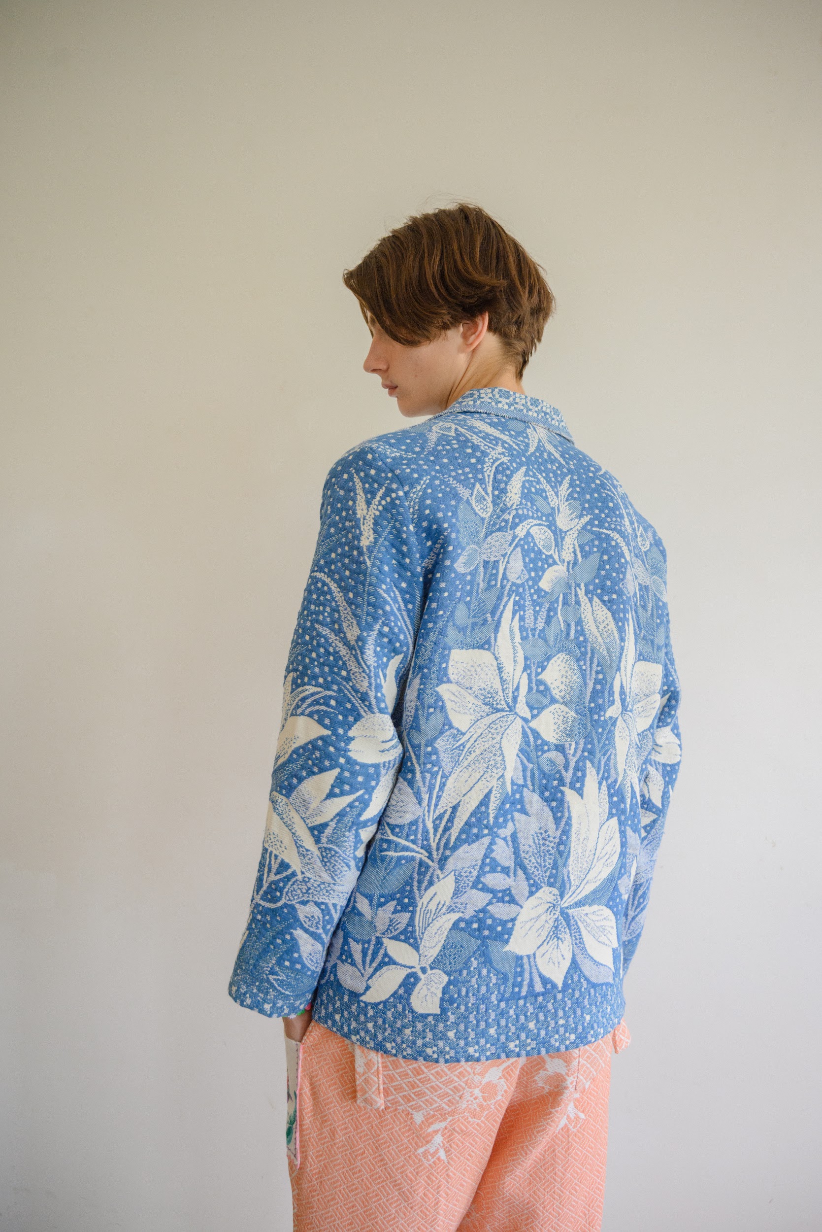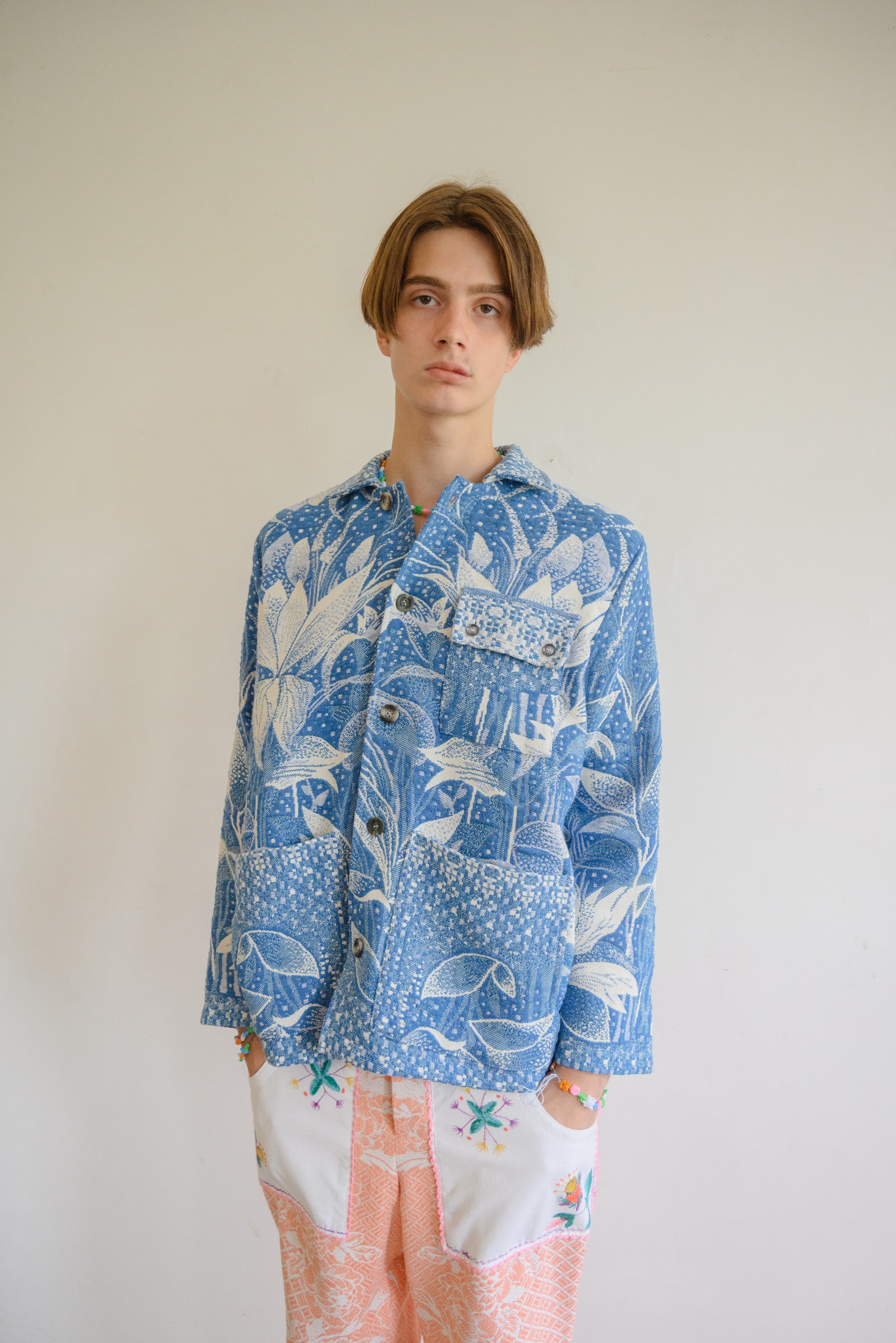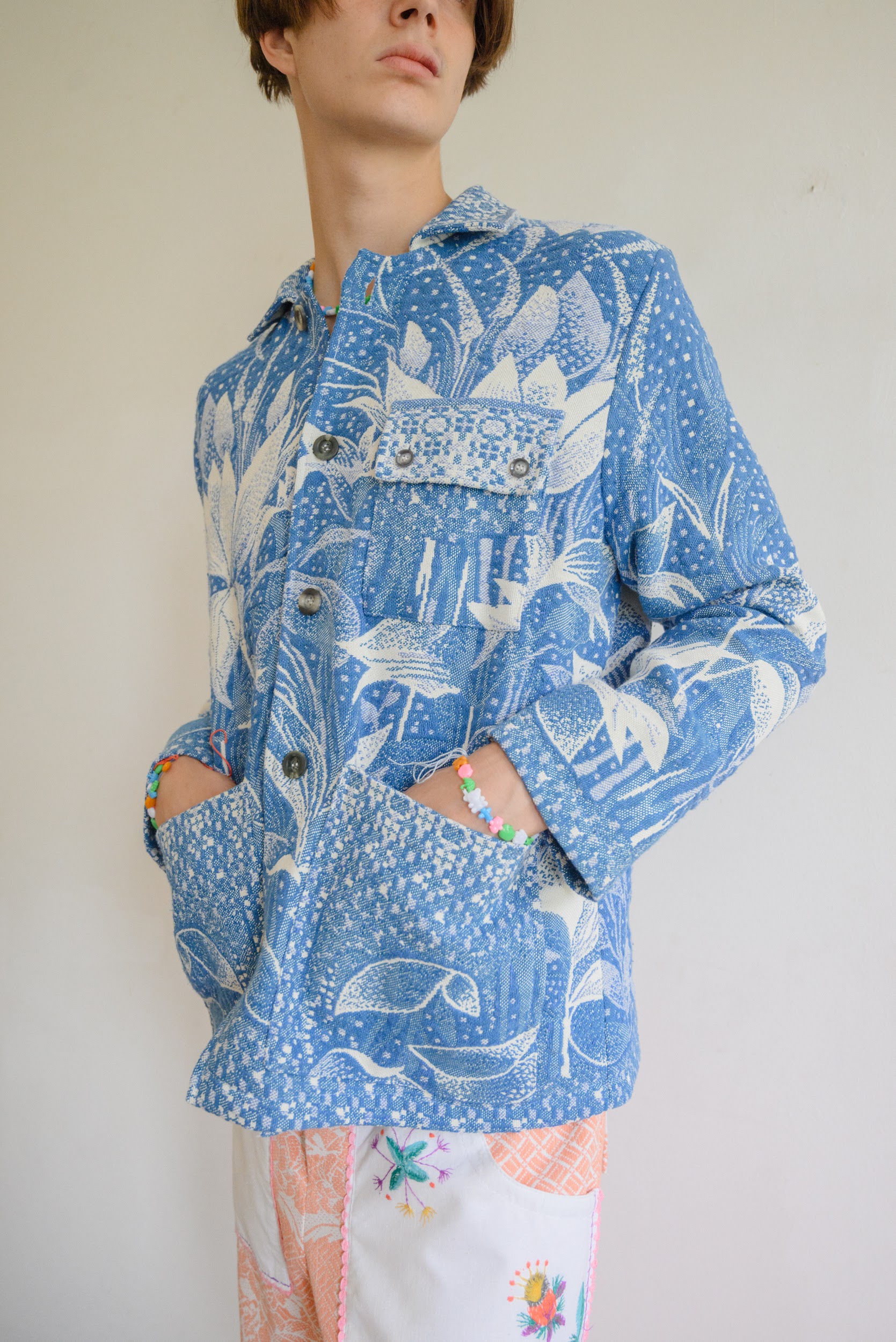 Пиджак сшит из антикварного хлопкового покрывала с растительным принтом, периода 1970х годов.