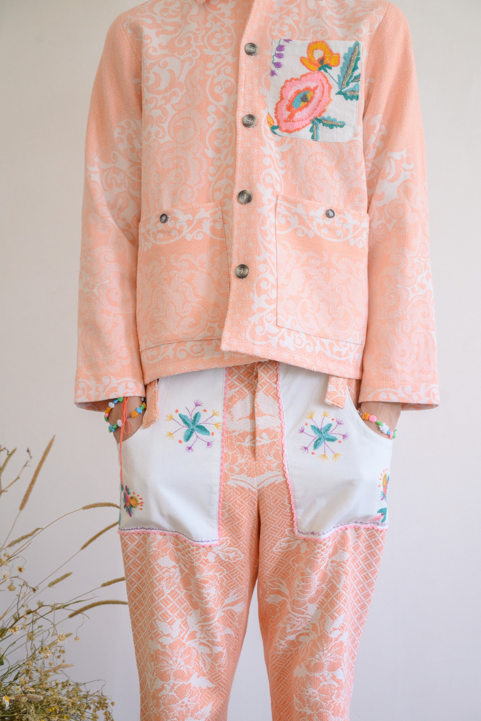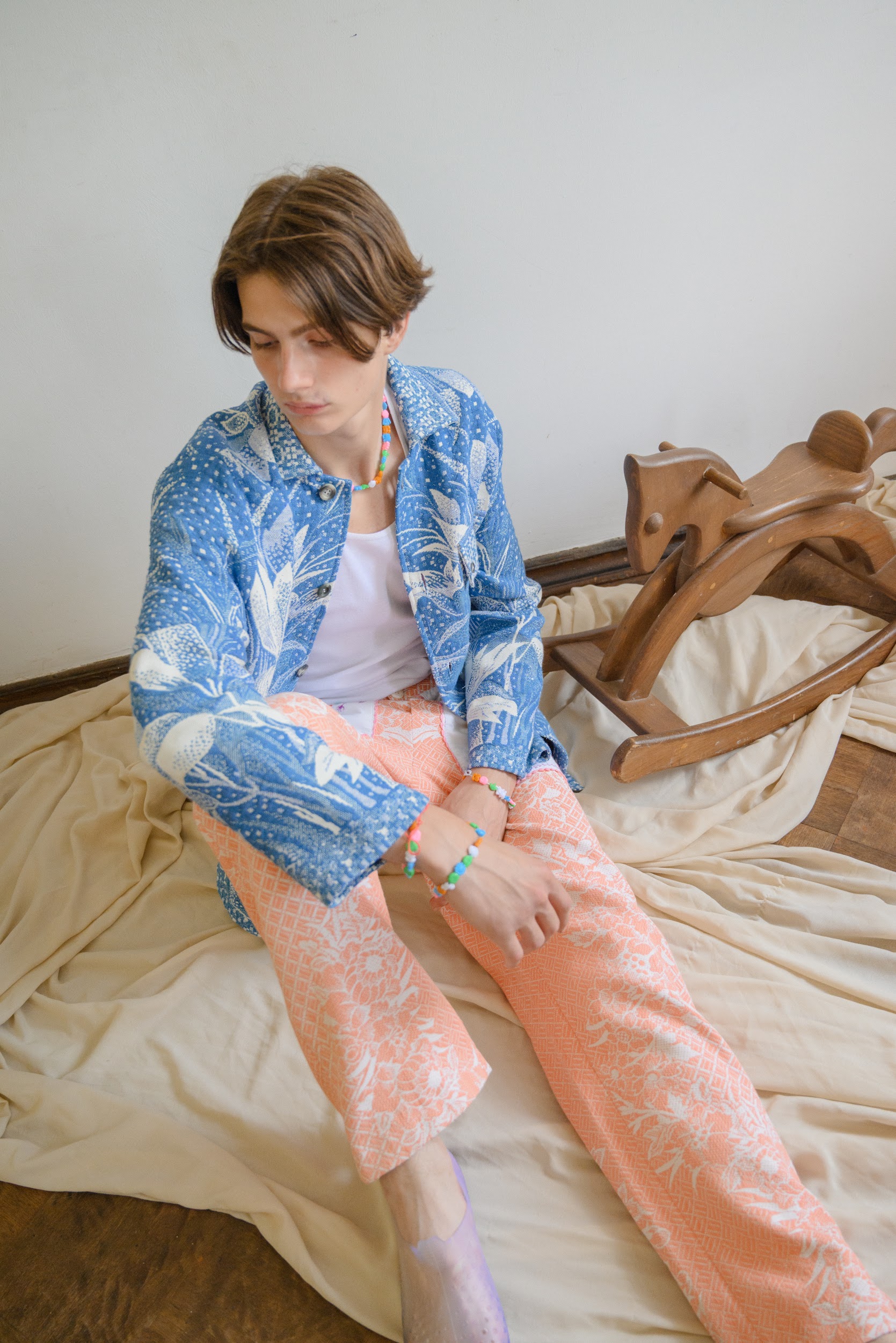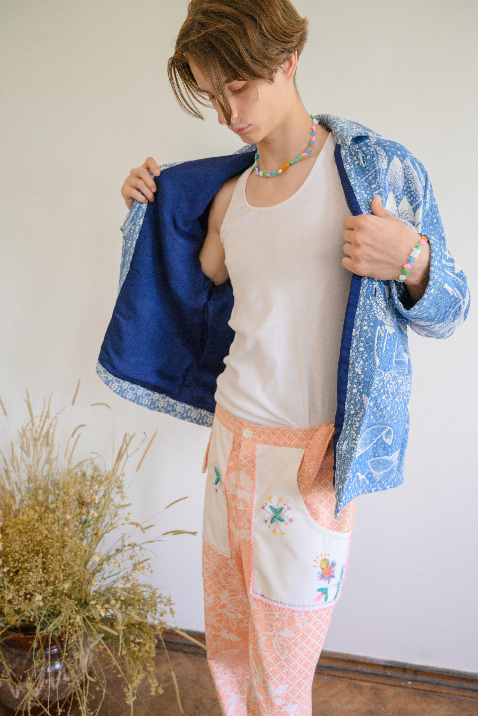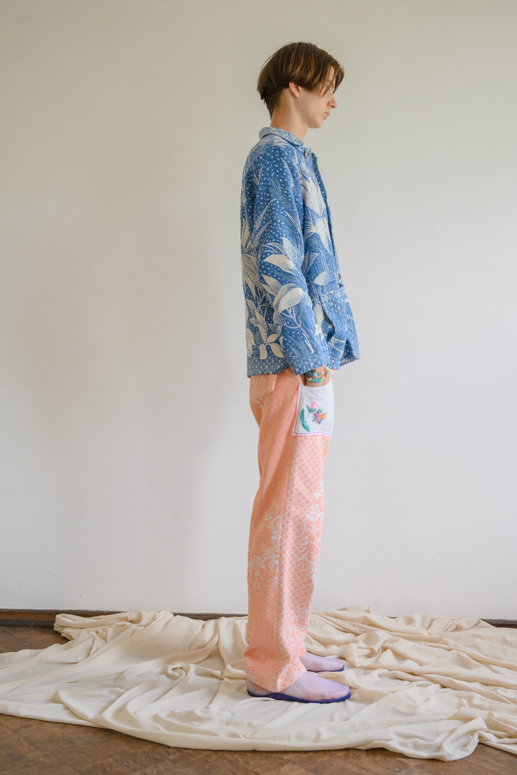 Пиджак сшит из антикварного хлопкового покрывала с растительным принтом, периода 1970х годов.