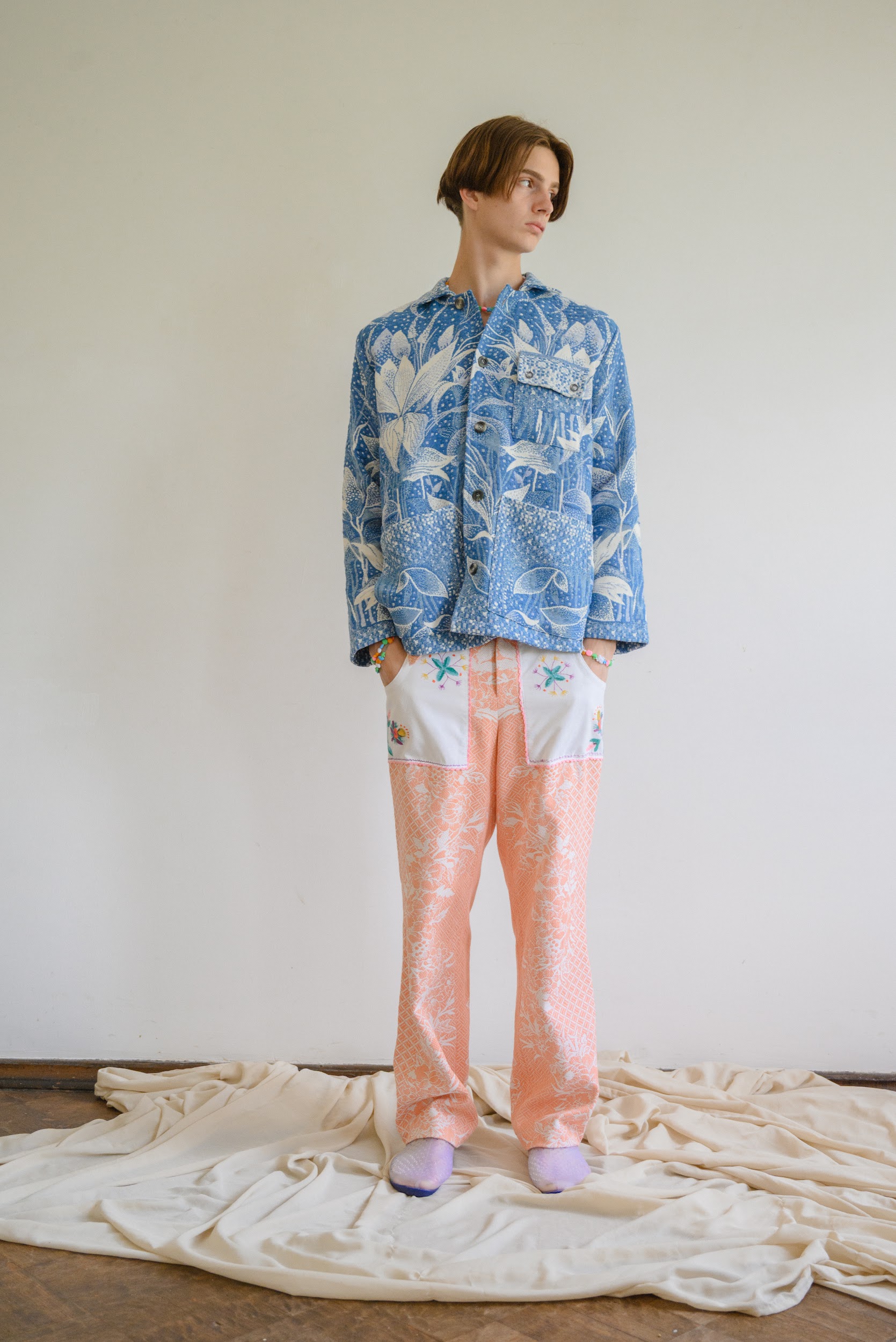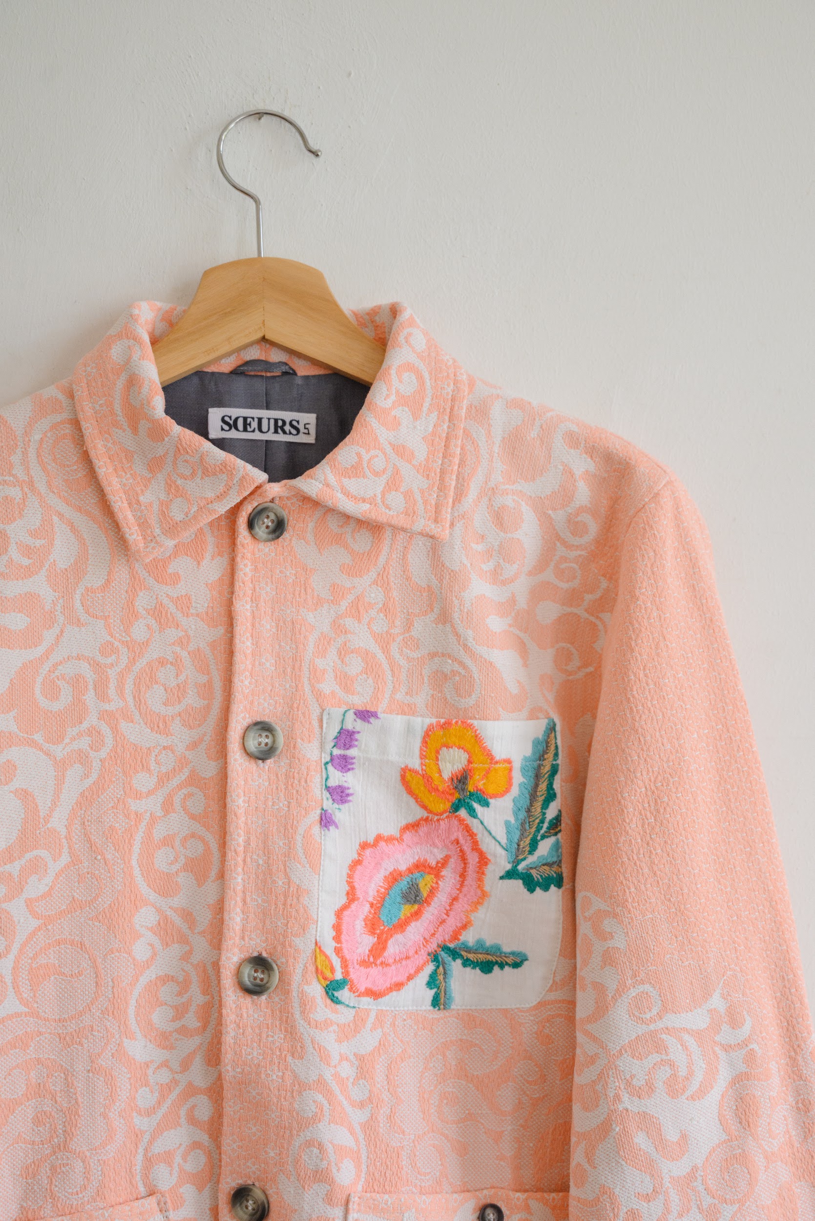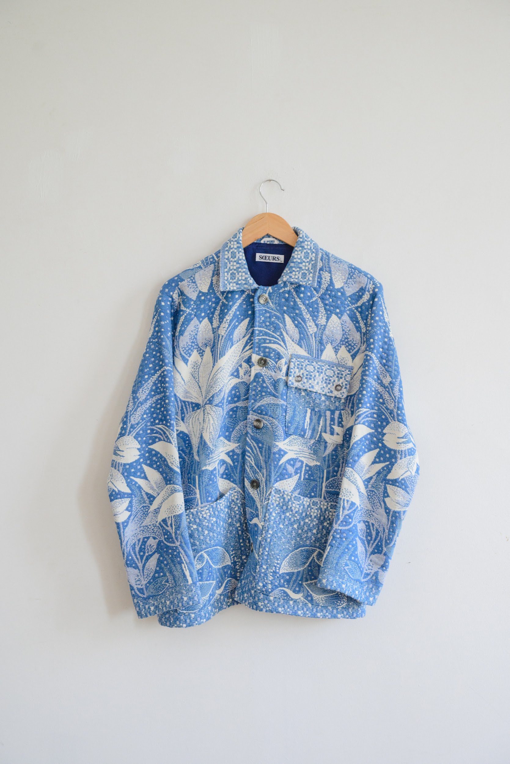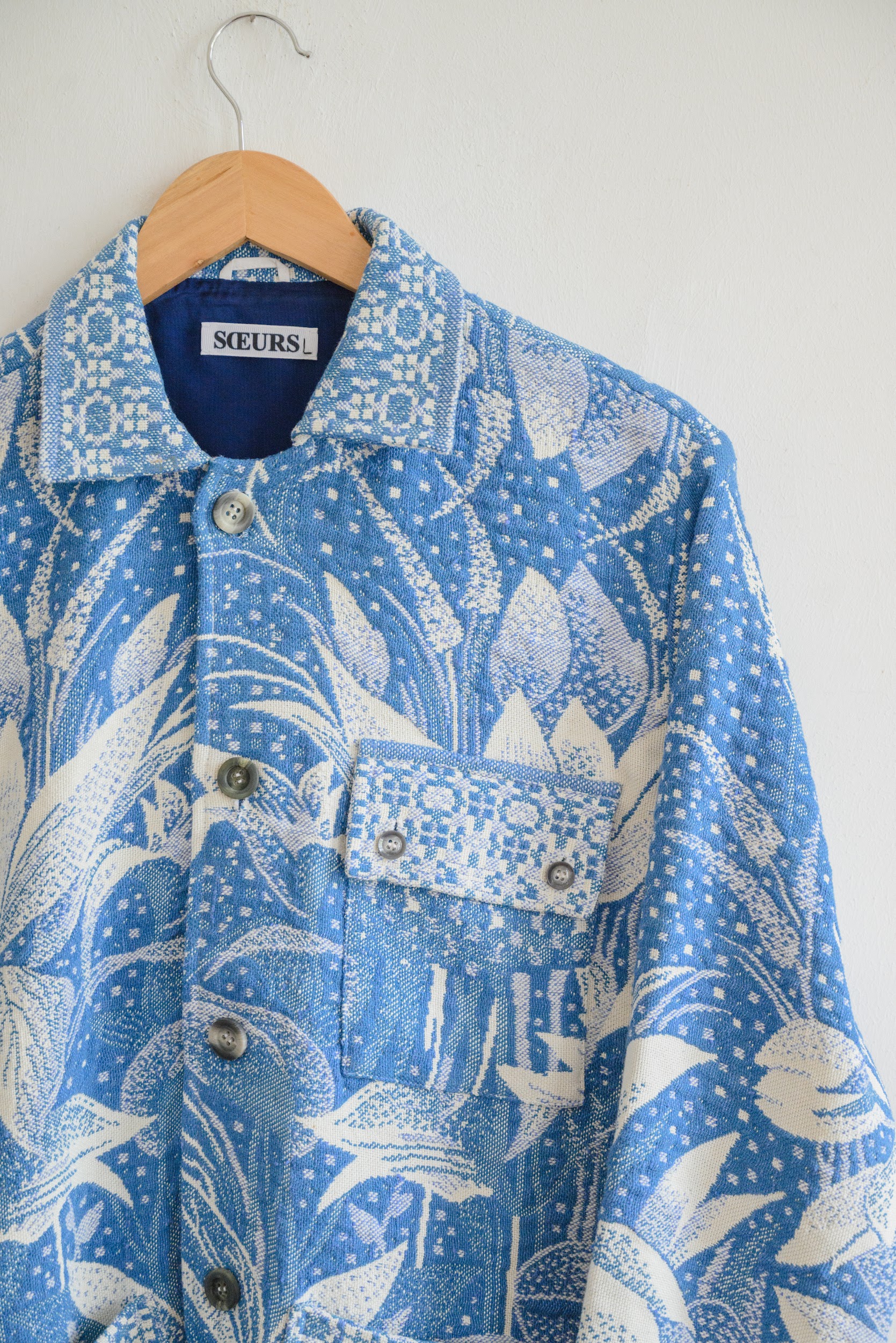 Пиджак сшит из антикварного хлопкового покрывала с растительным принтом, периода 1970х годов.