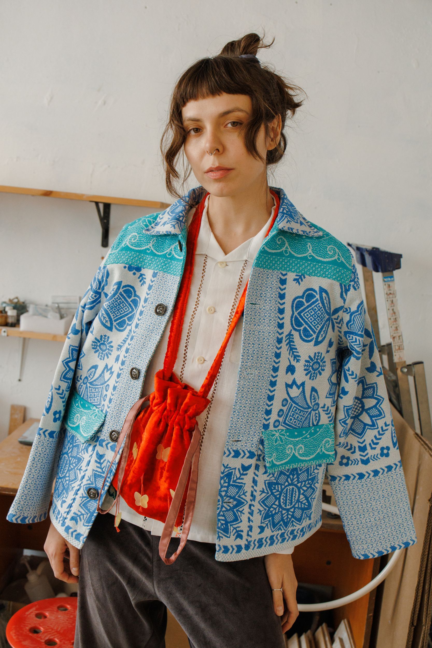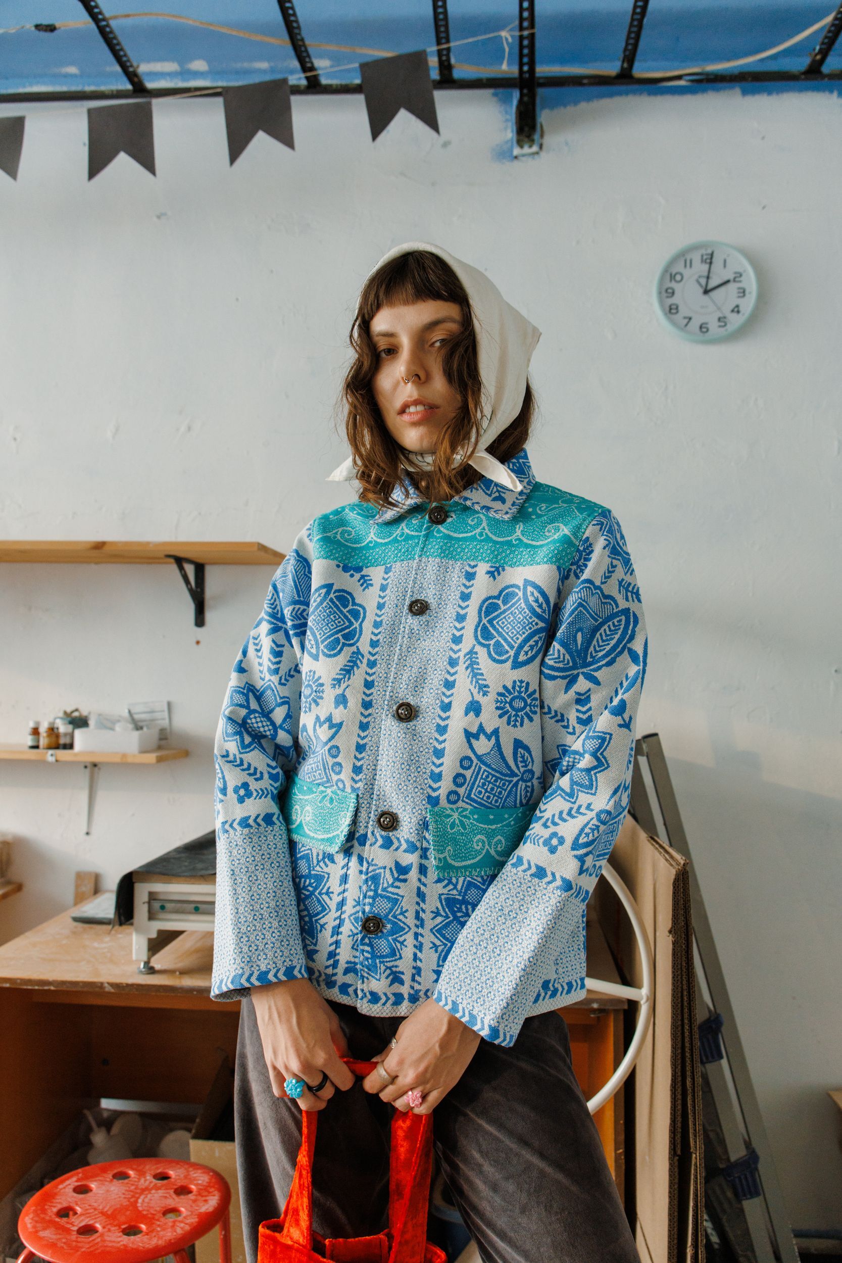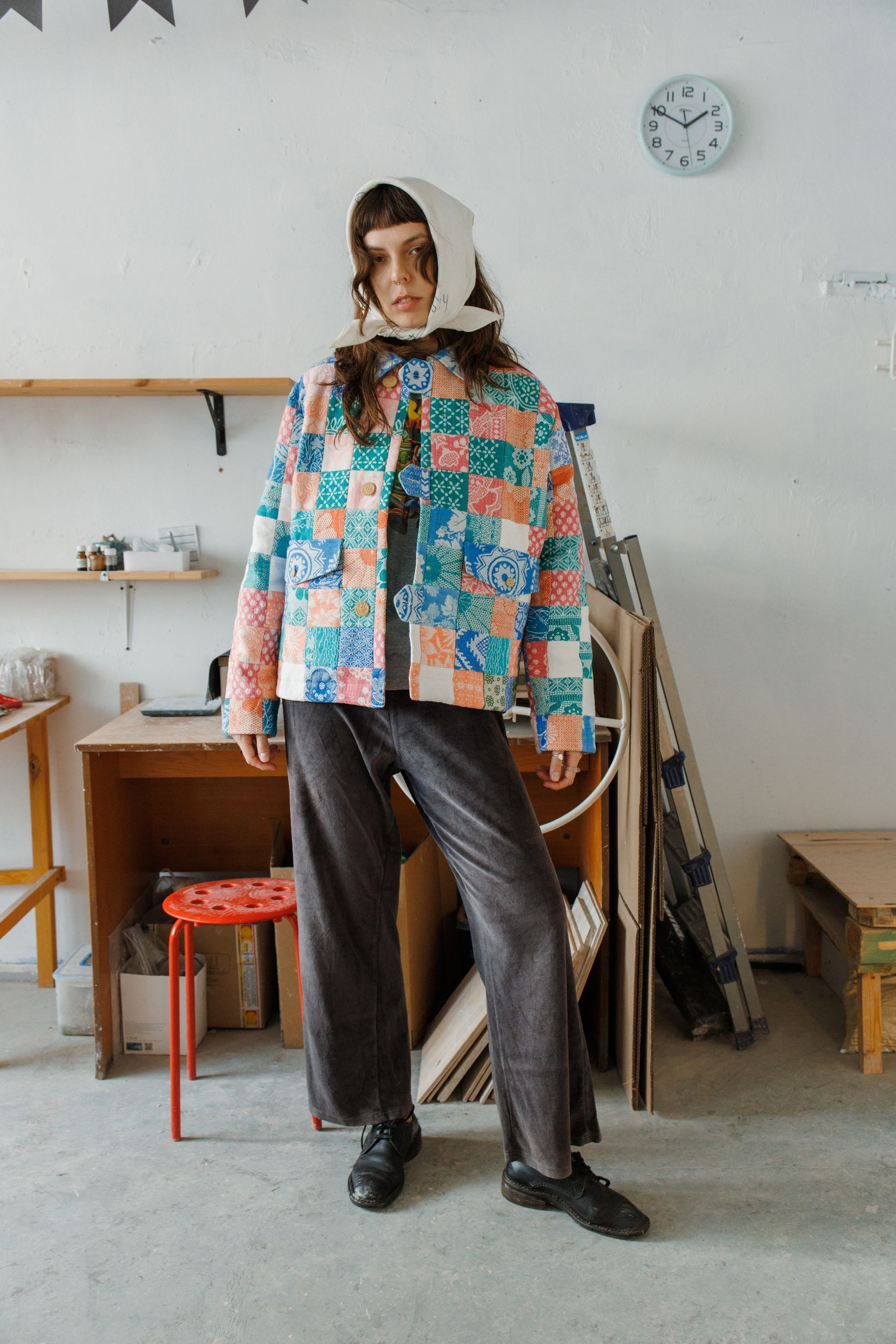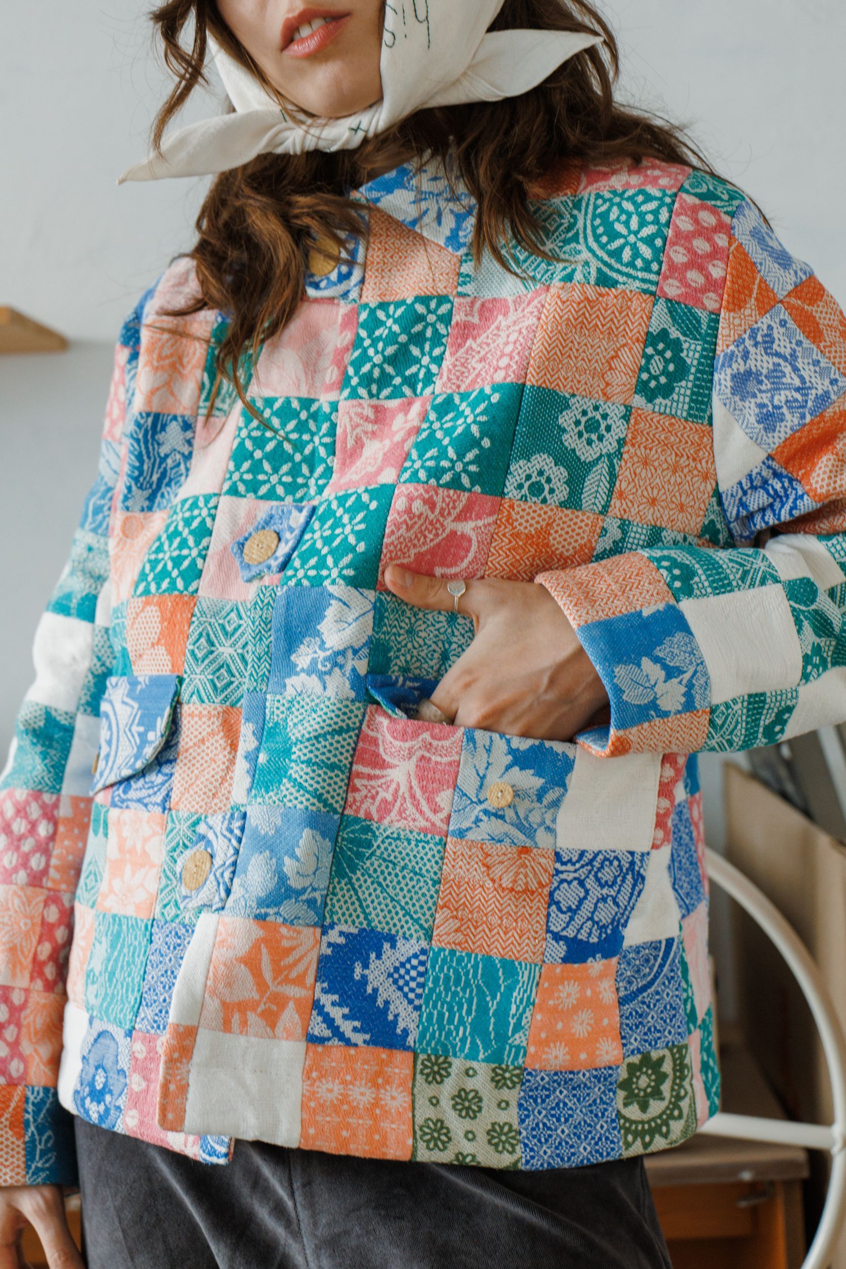 This one-of-a-kind Jacket is made from cotton coverlets sewn in patchwork technique.