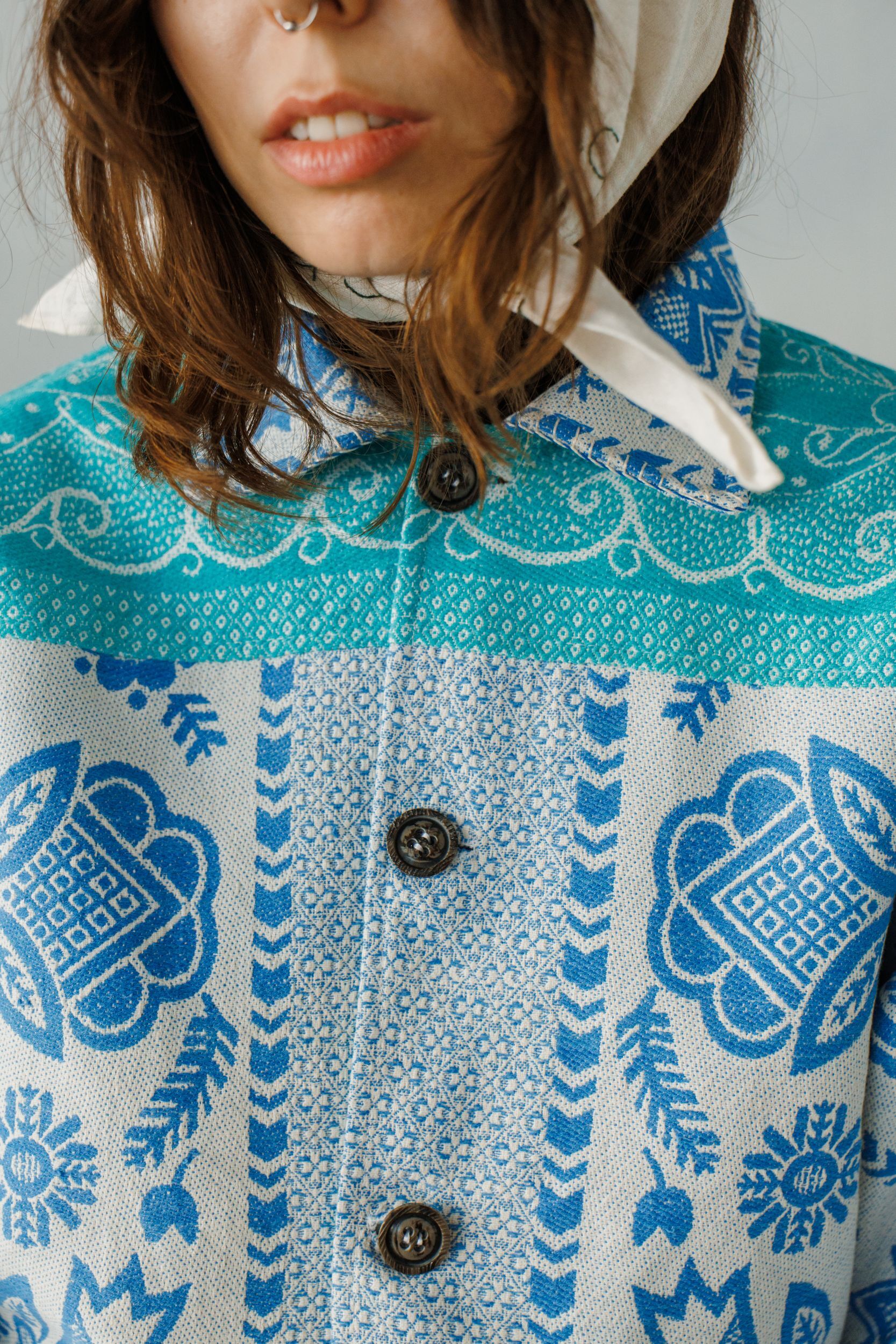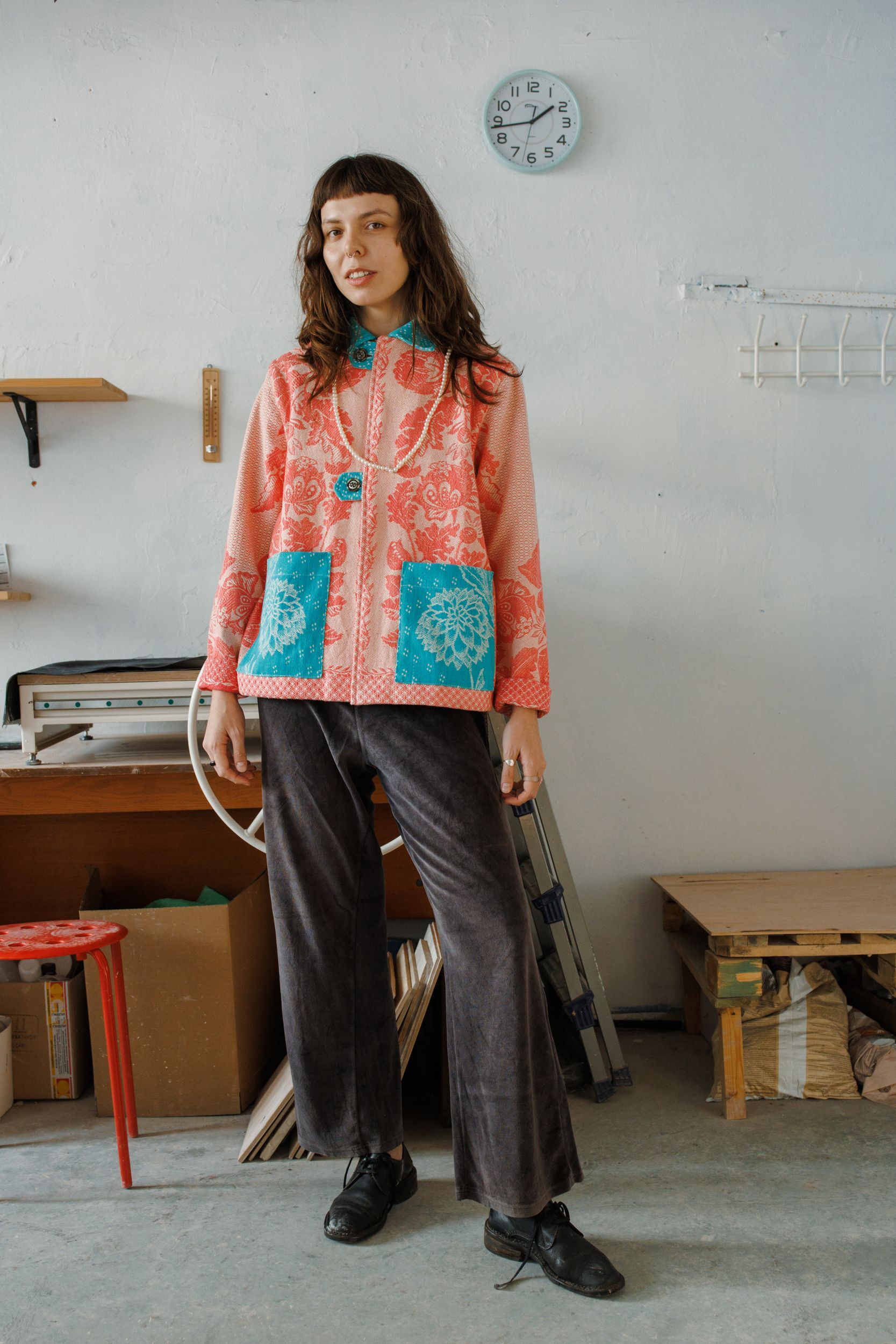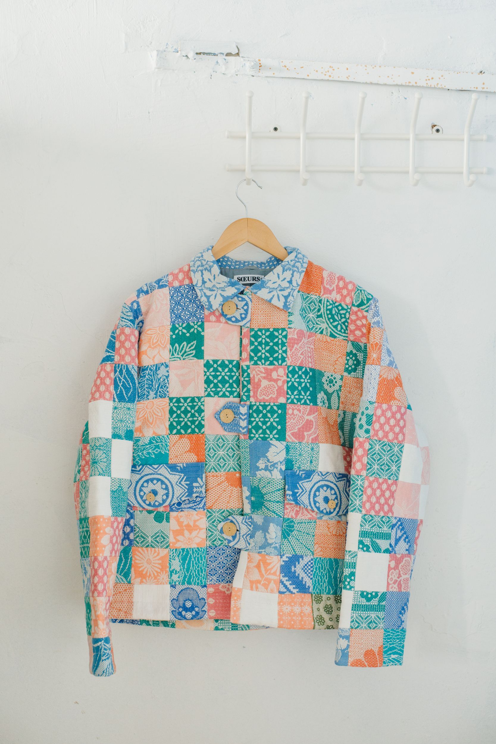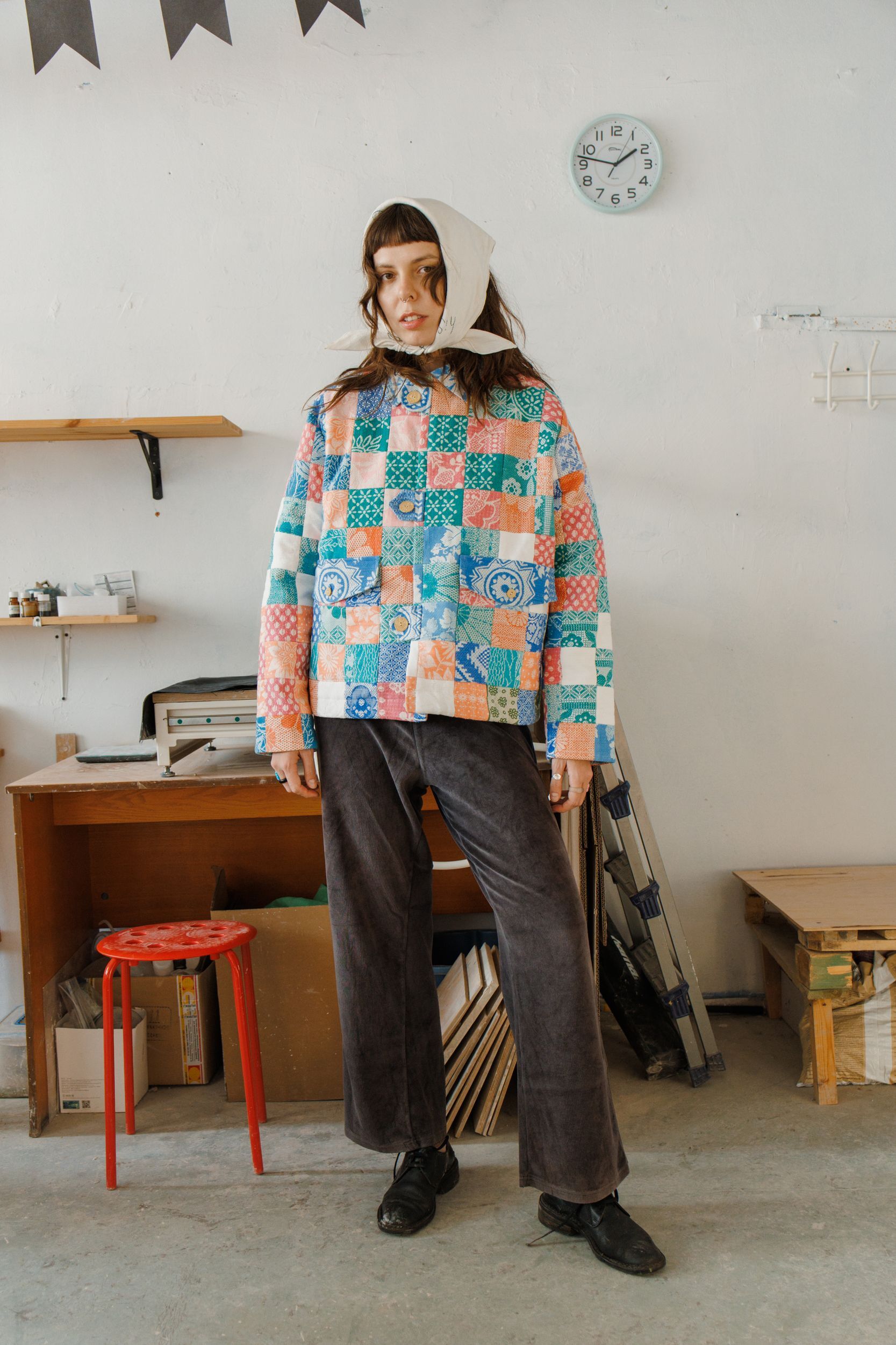 This one-of-a-kind Jacket is made from cotton coverlets sewn in patchwork technique.