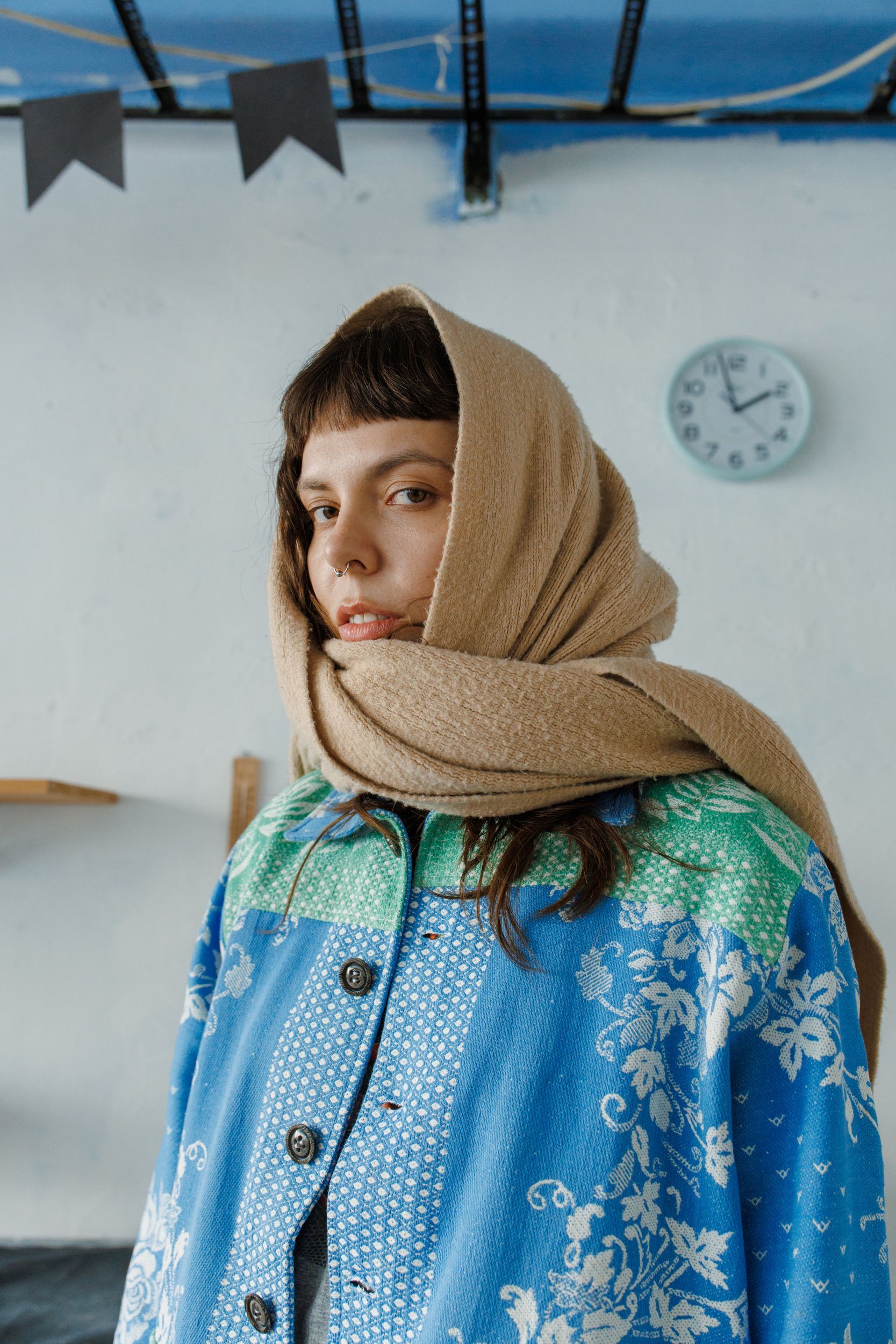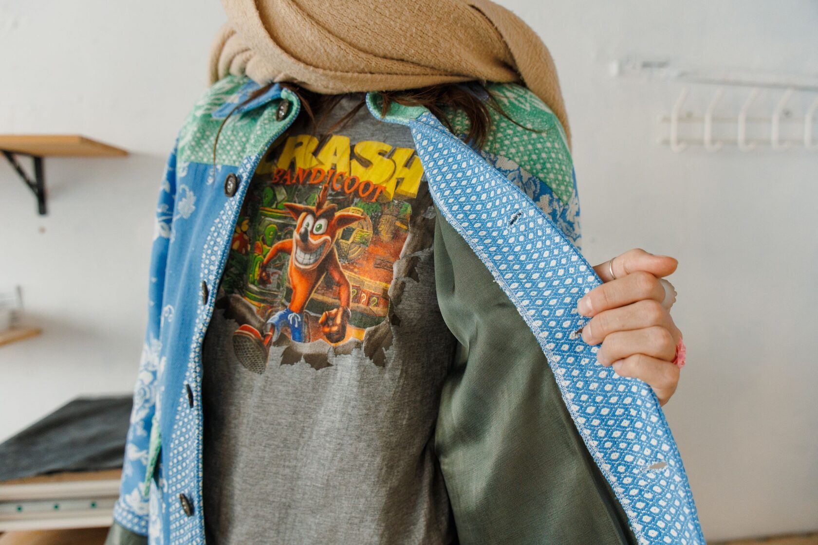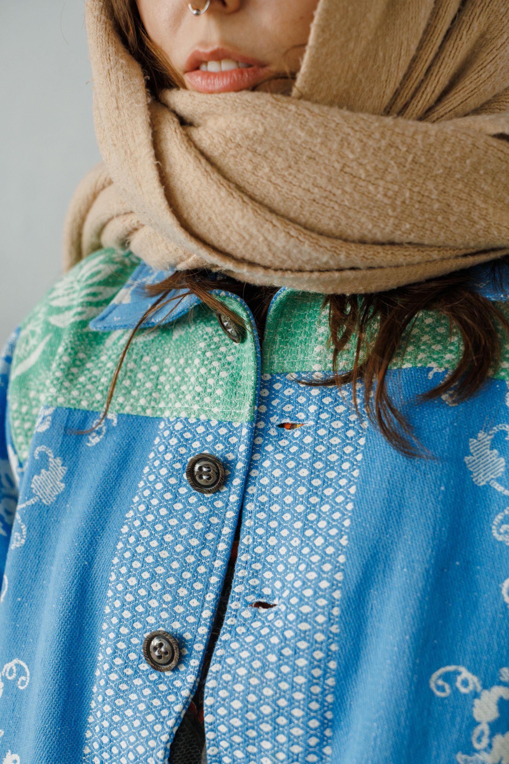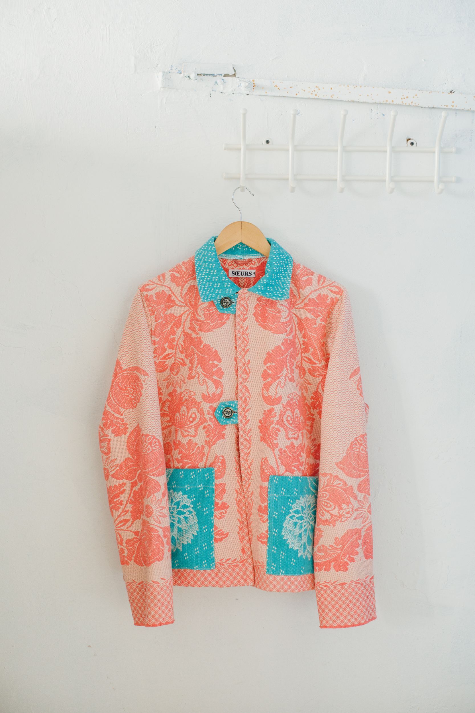 This one-of-a-kind Jacket is made from cotton coverlets sewn in patchwork technique.