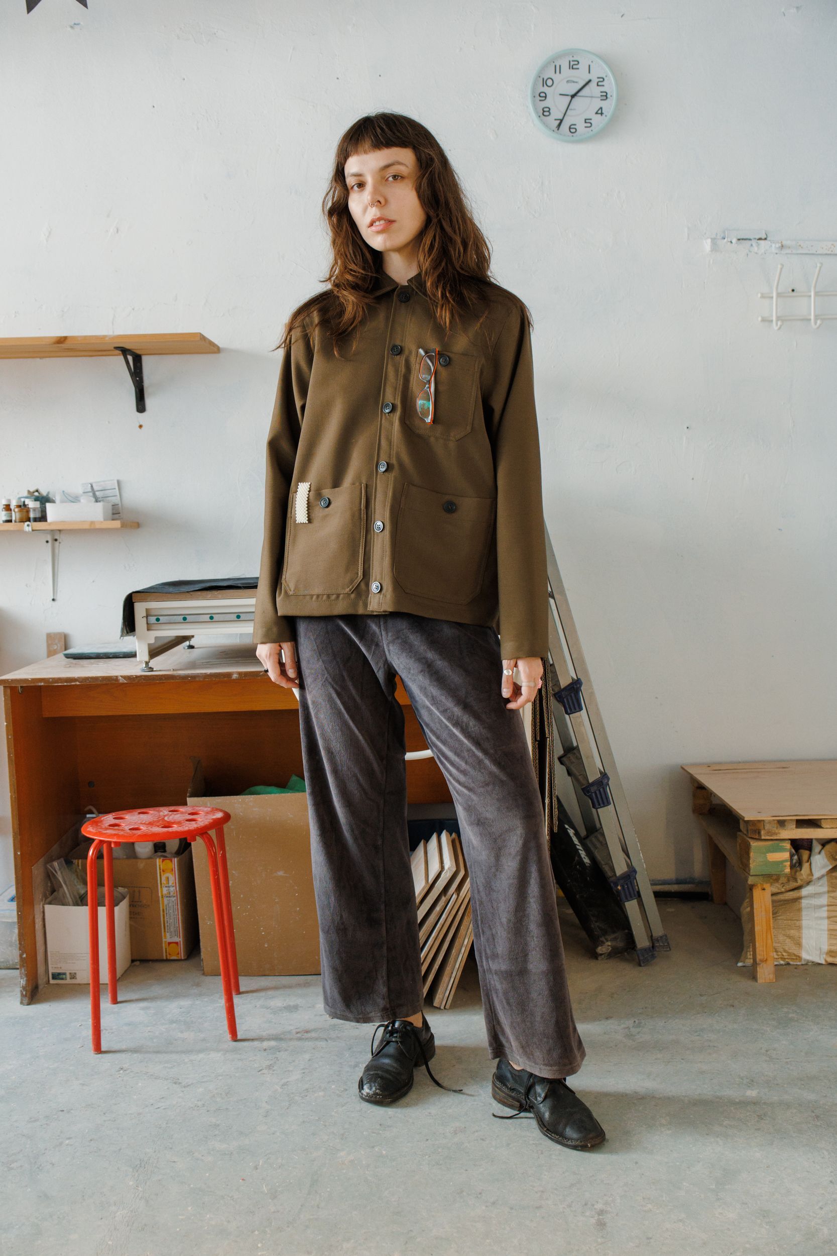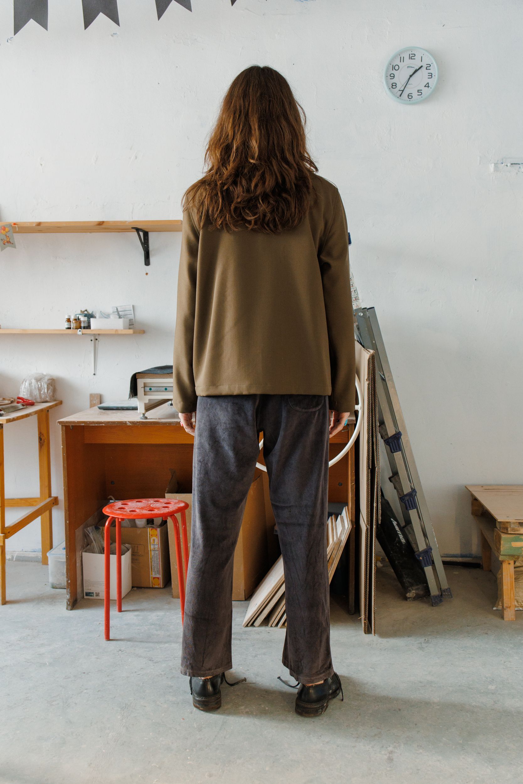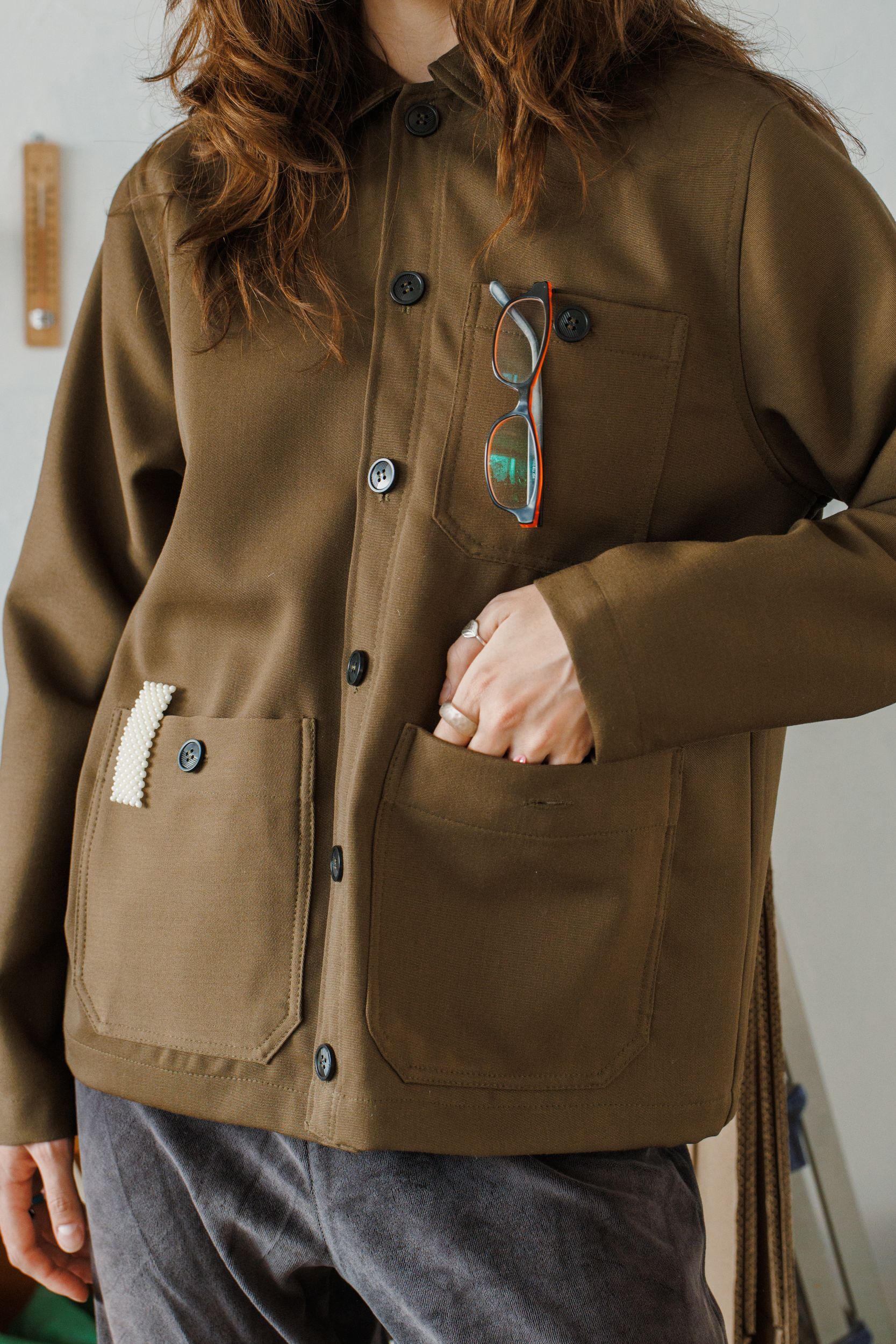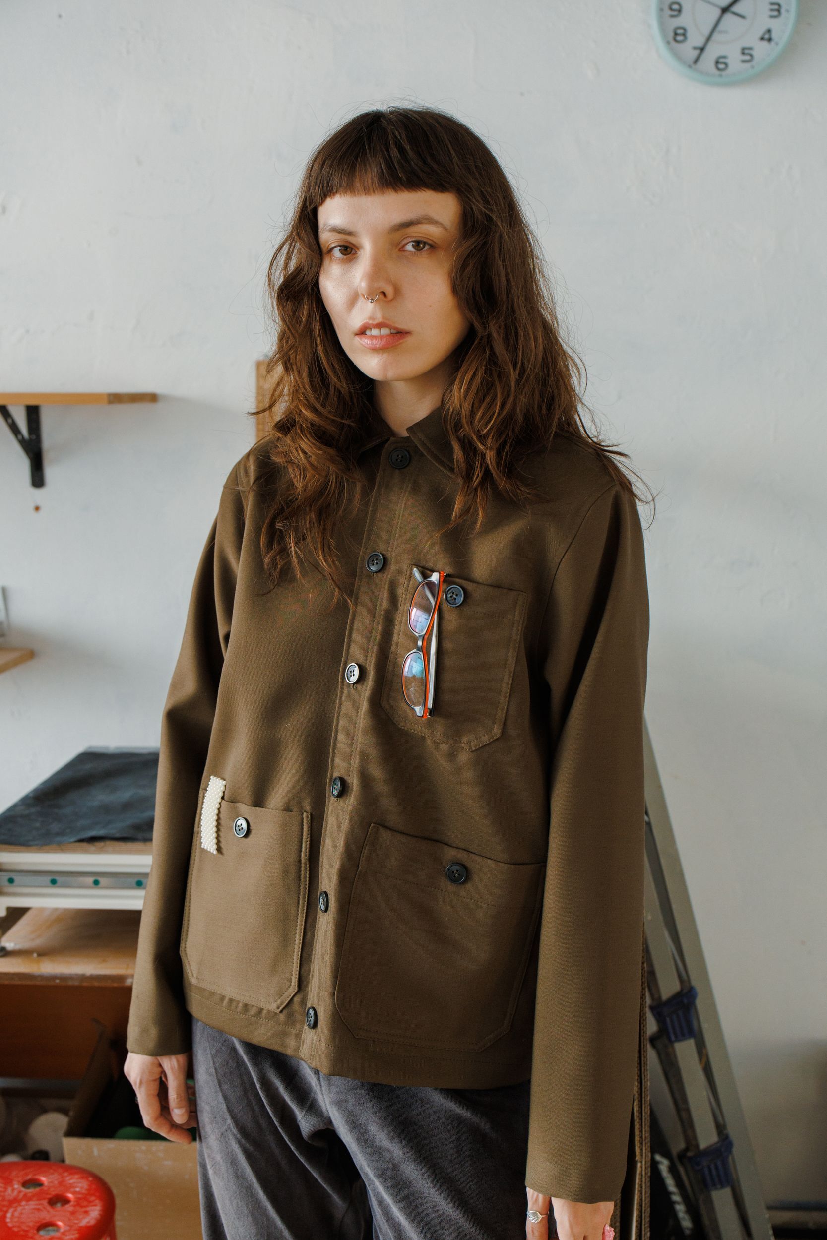 Working Jacket is made from a deadstock semi-woolen uniform fabric.