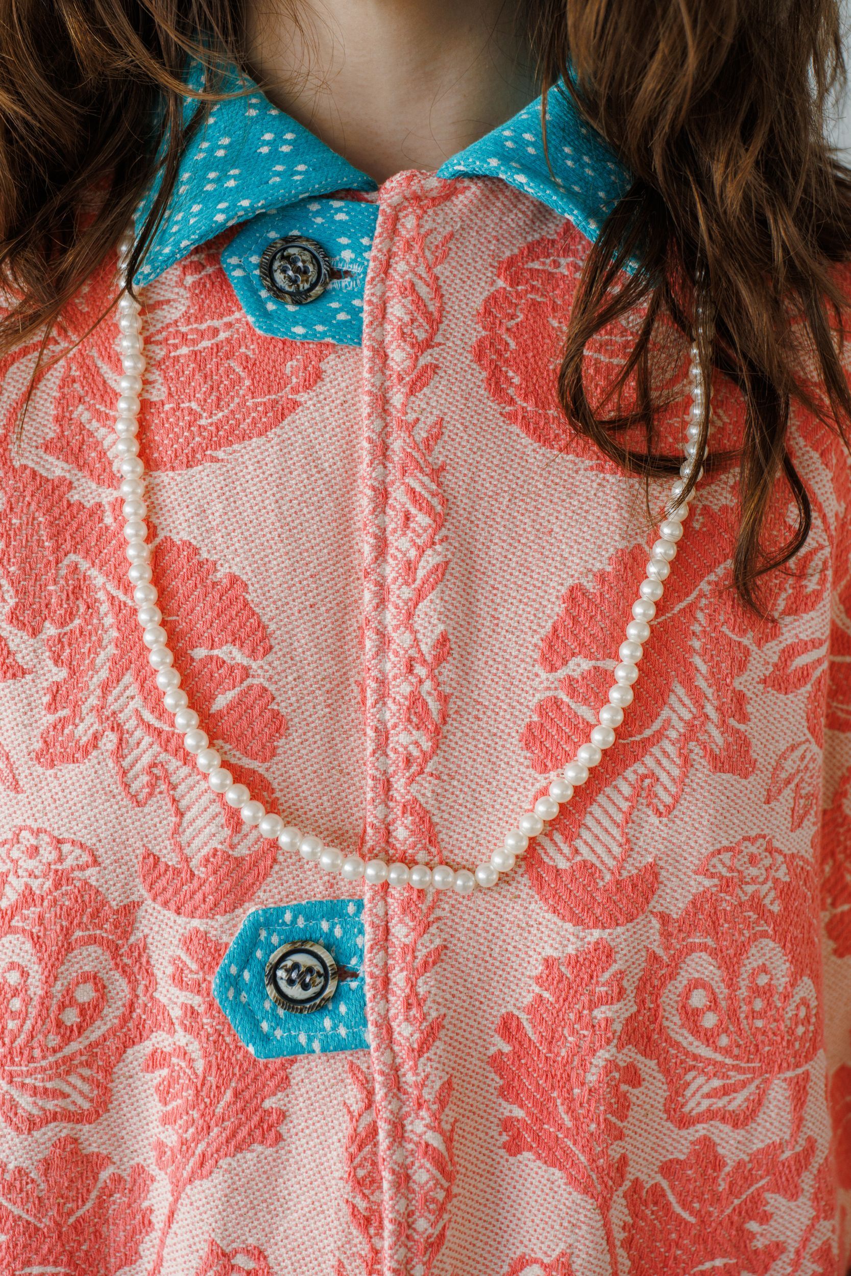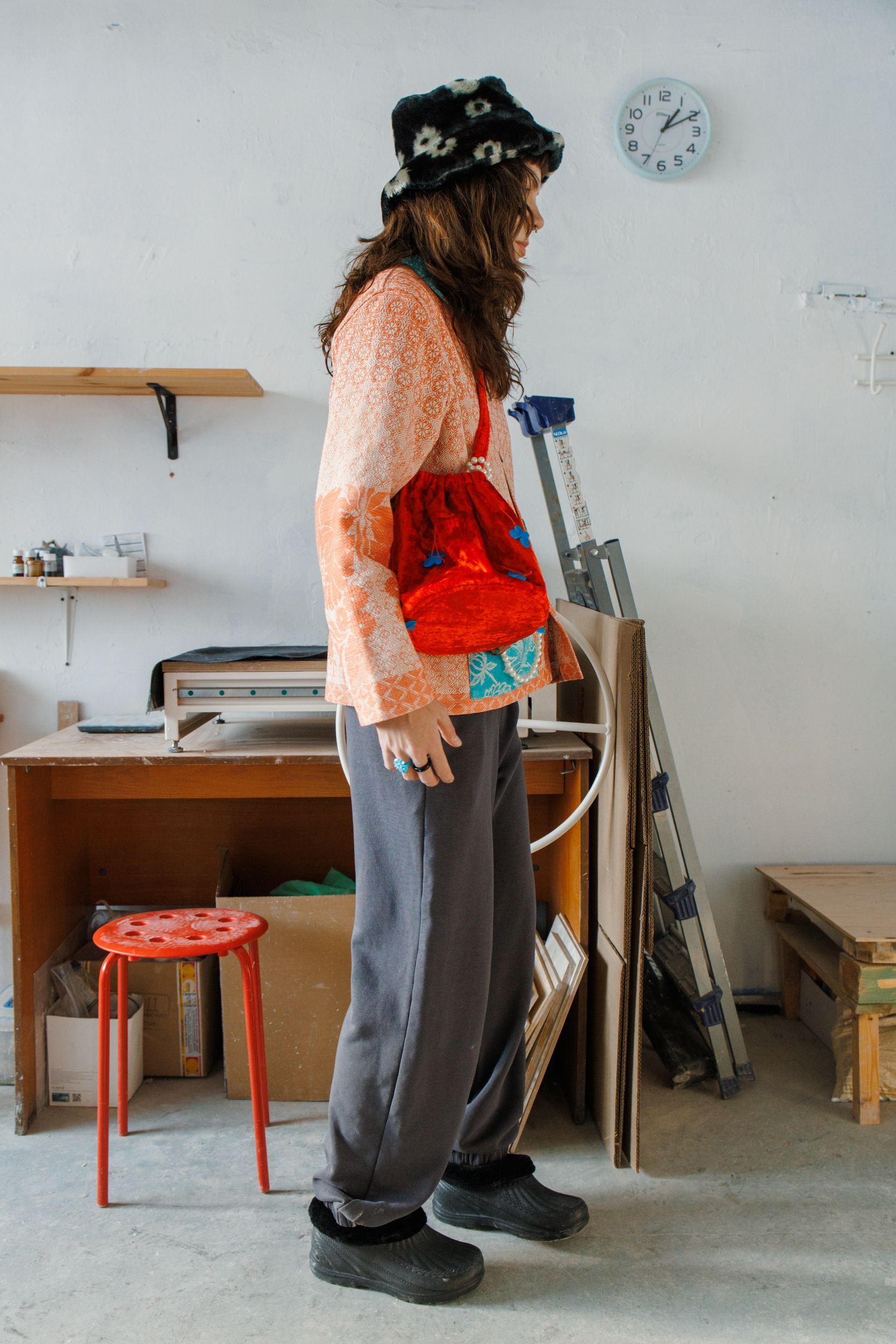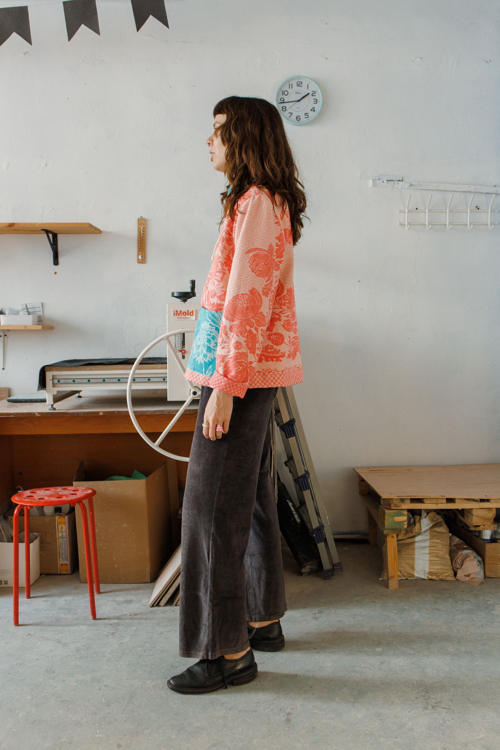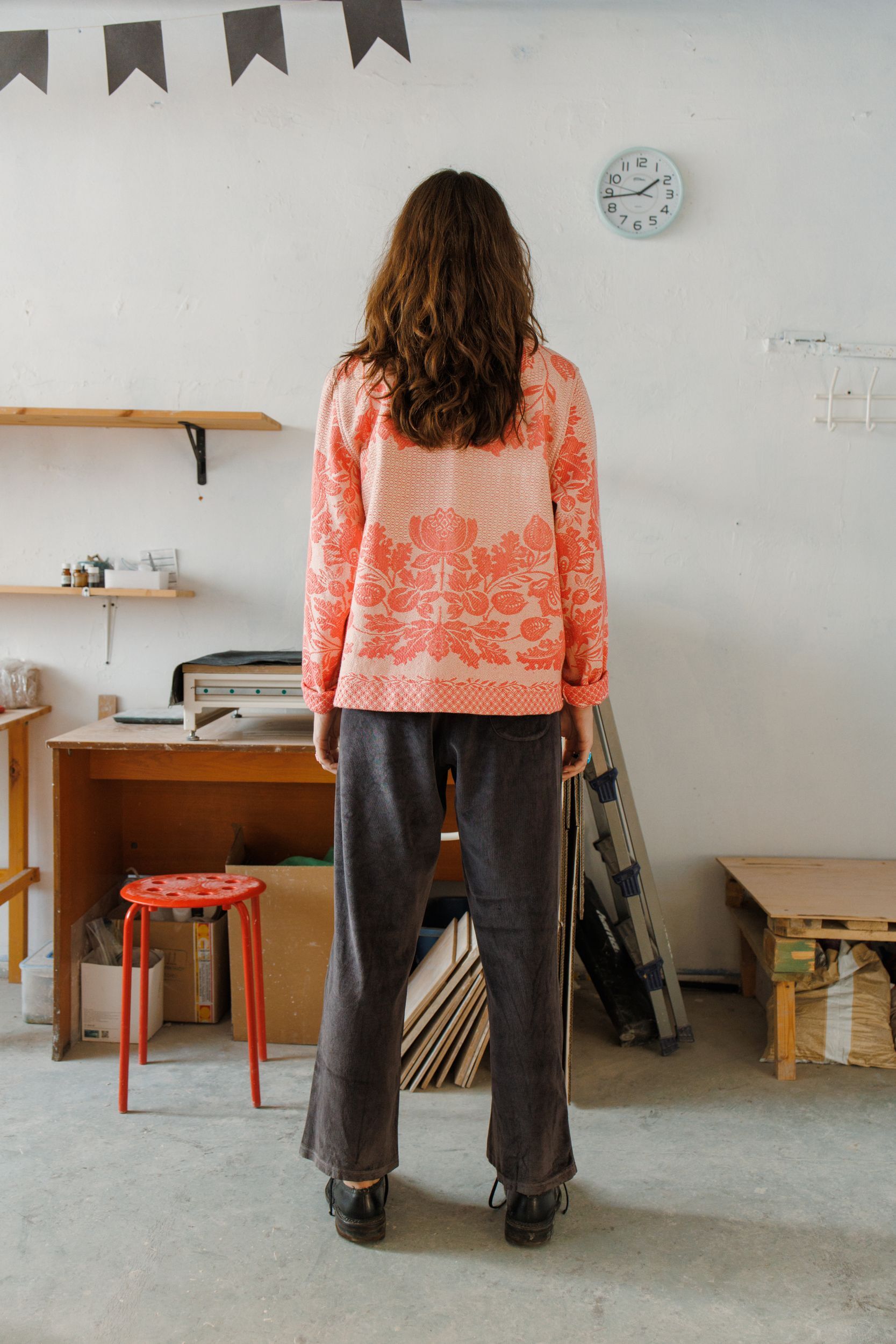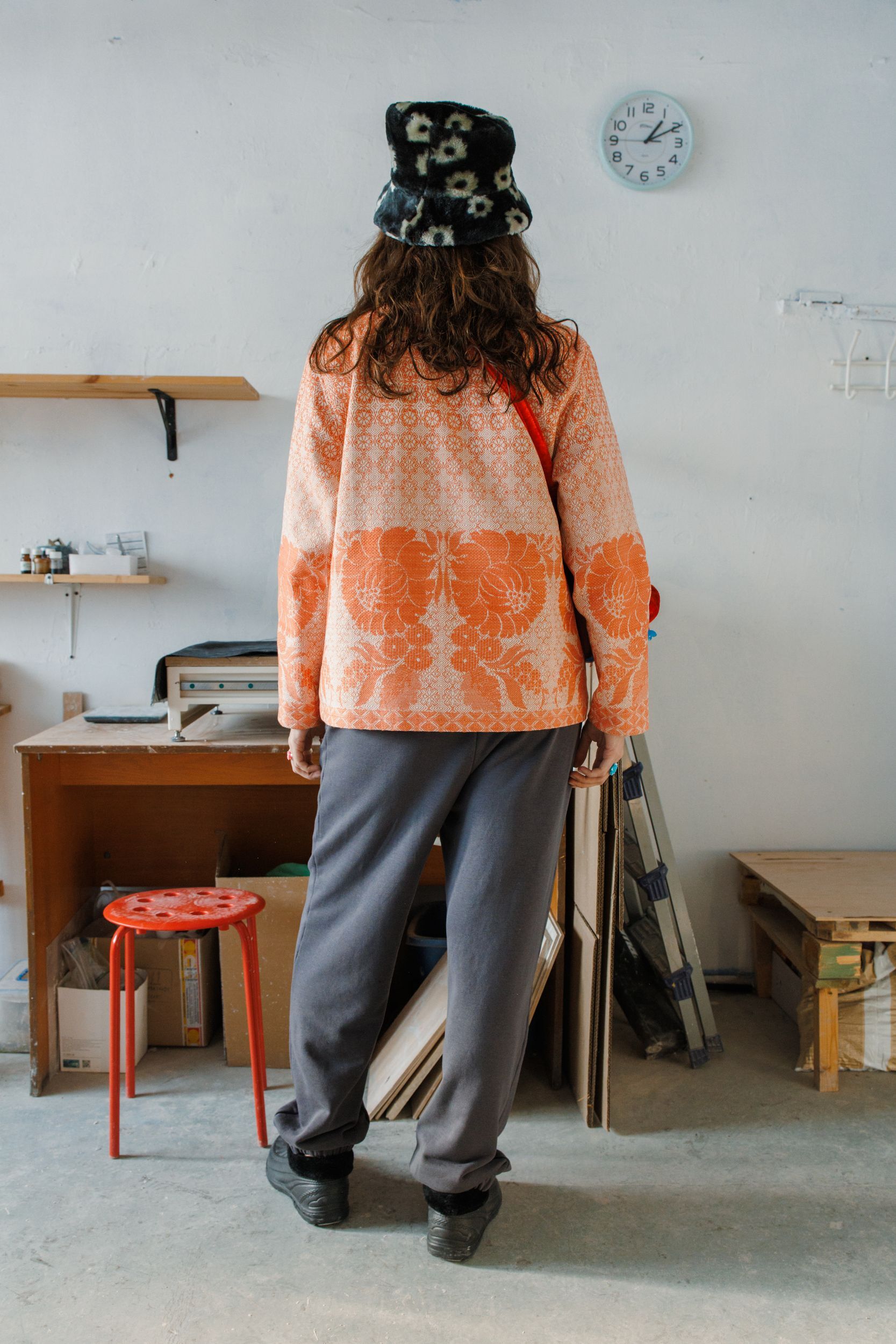 Пиджак сшит в одном экземпляре из двух антикварных покрывал с цветочным узором, периода 1960-70х годов.