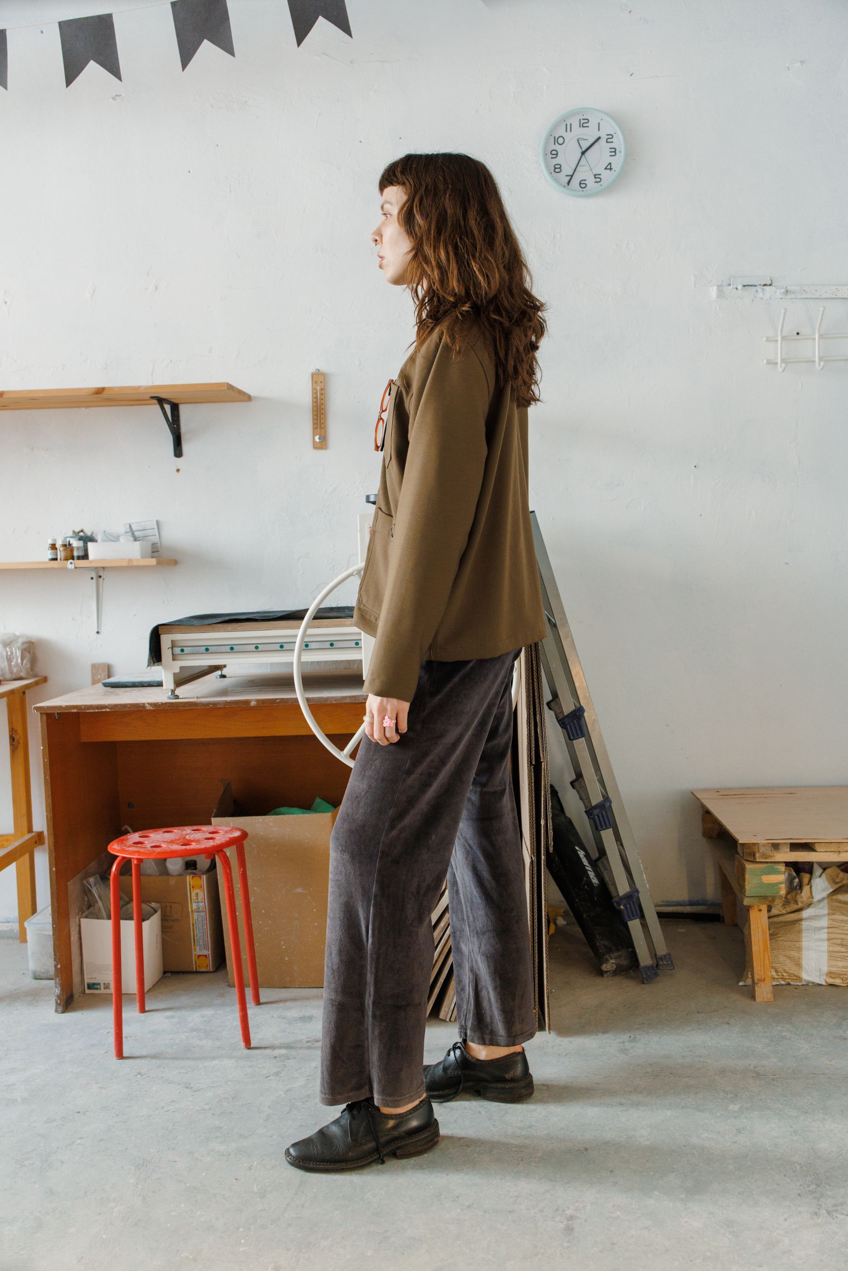 size M (boxy fit, unisex) three vintage buttons on tabs two patch pockets with flaps on buttons silk lining made in Nizhny Novgorod dry clean only
