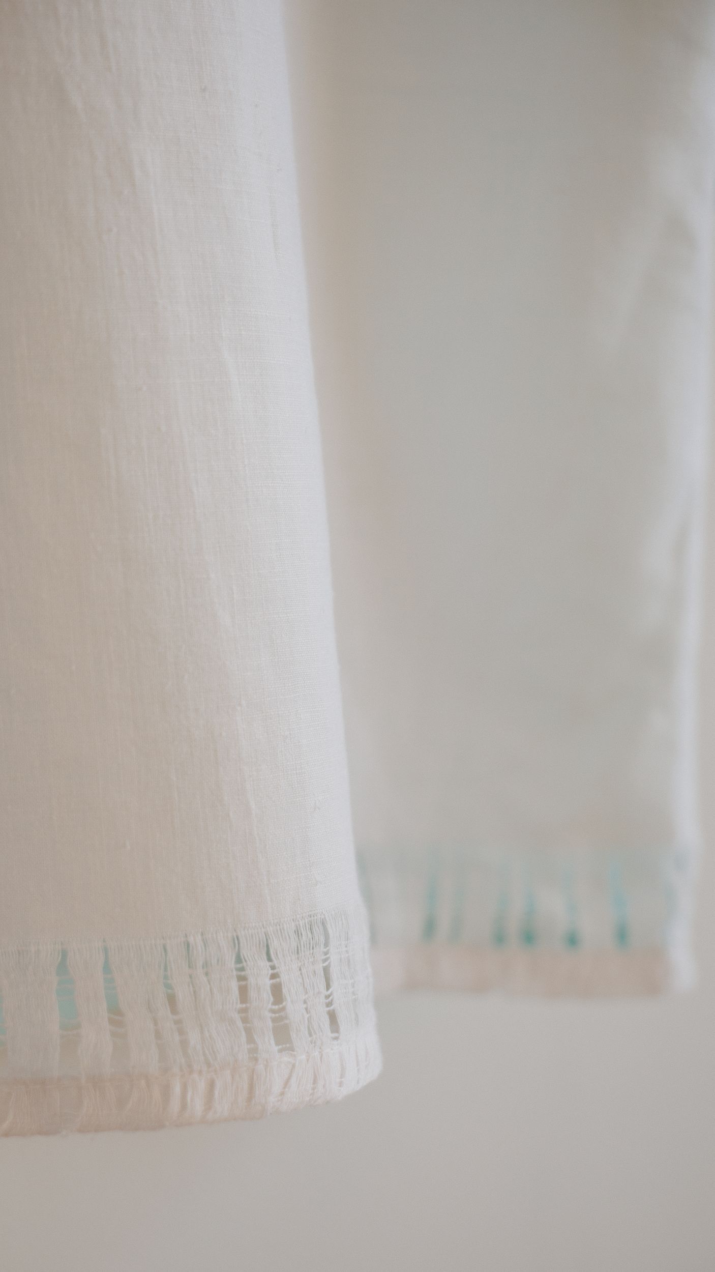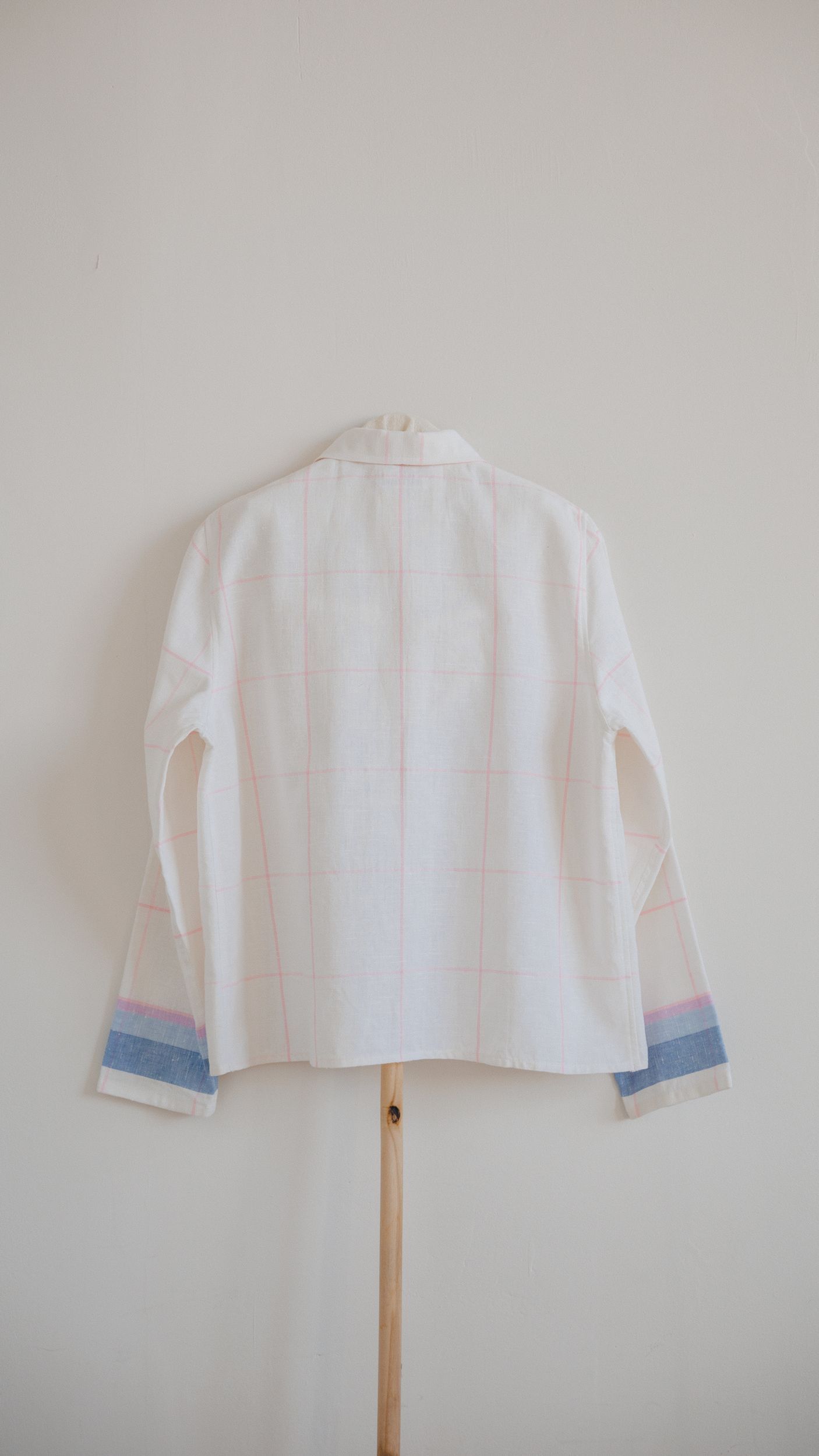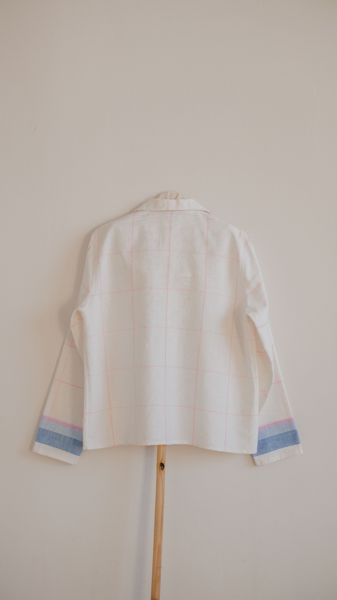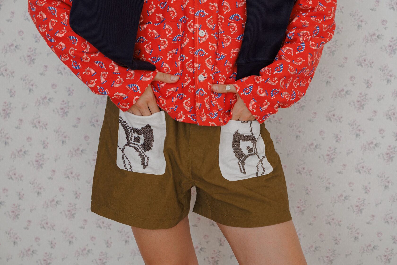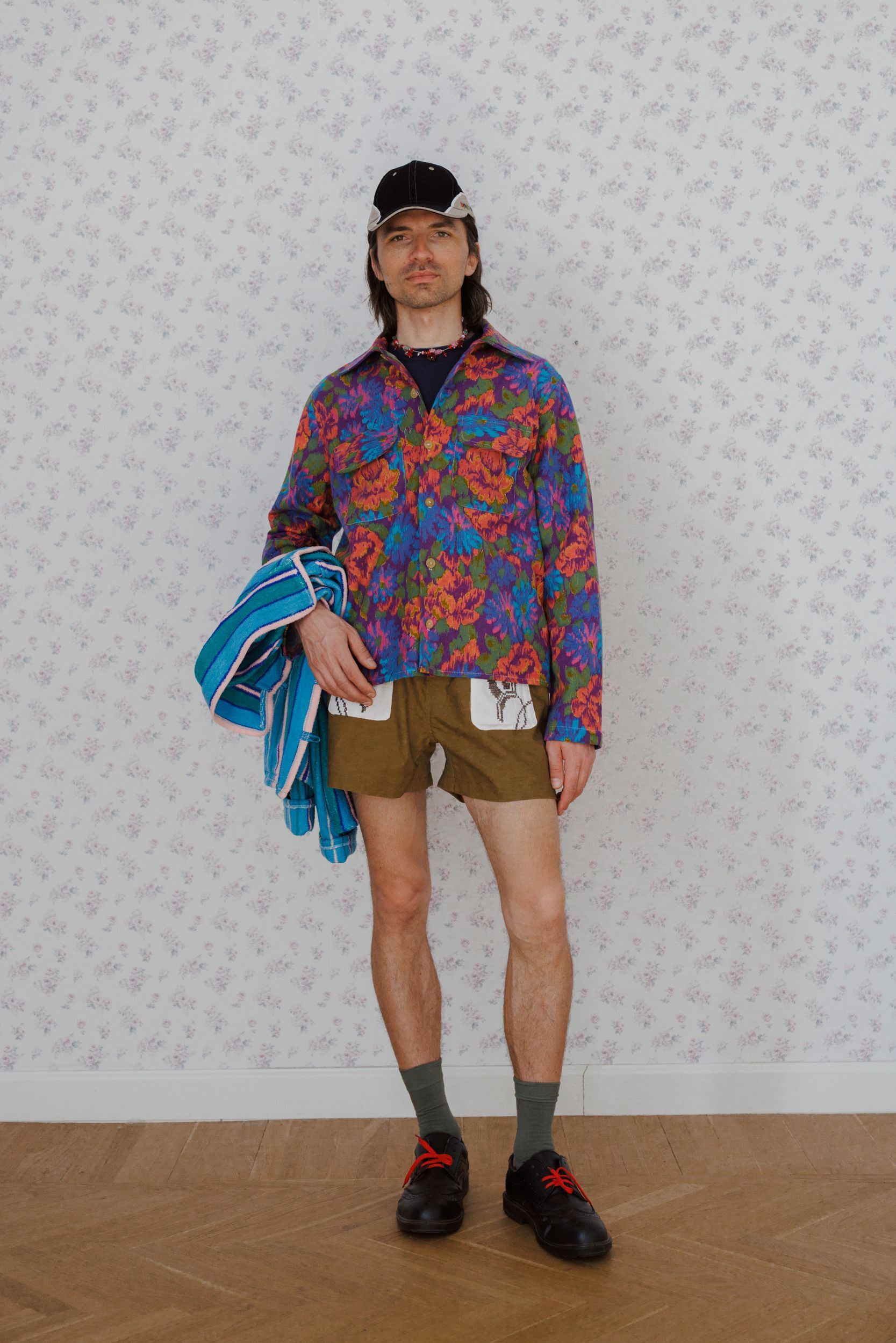 This one-of-a-kind long sleeve Shirt is made from a cotton tablecloth, circa 1960s. Tablecloth was featured with a handmade floral embroidery.